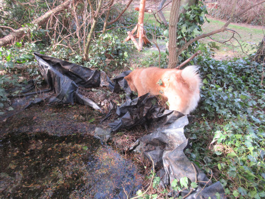 Aber dazu muss ich erst einmal diese störrische Teichfolie lockern und hochziehen,um