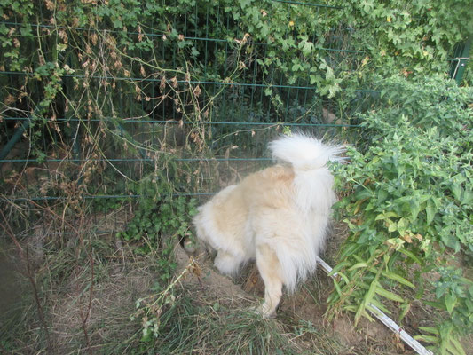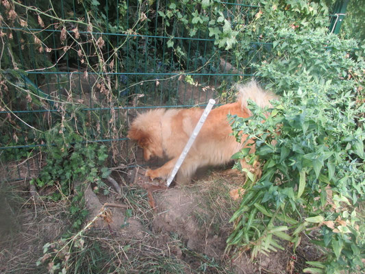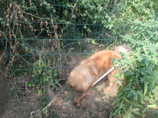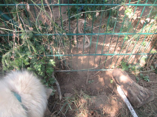 Am Nachmittag große Buddelei am Zaun vom Gehege zum Garten hin und auch umgekehrt !!!