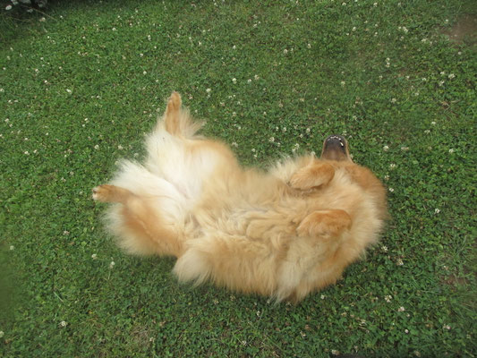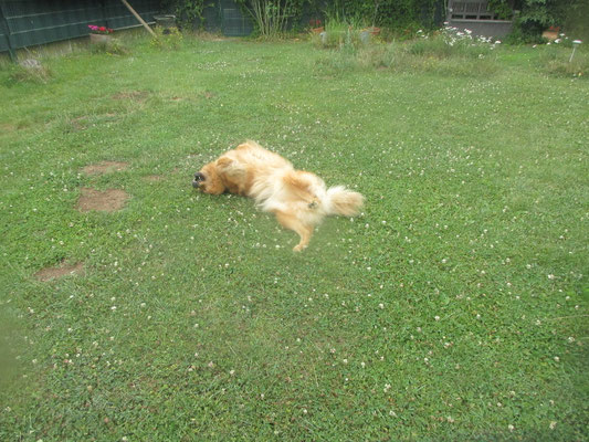 Derweil aalt Oma Dhanea sich genüsslich in der Nähe auf dem Rasen !!!!