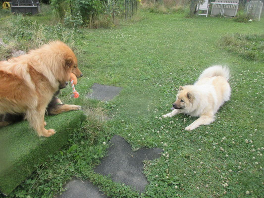Und dann kam Herrchen dazu !!! Es ging um das Spielzeug !!!!