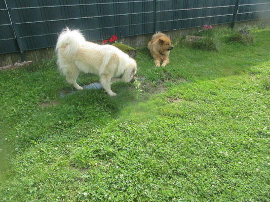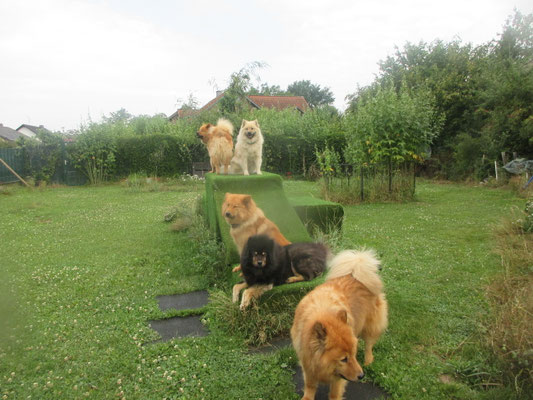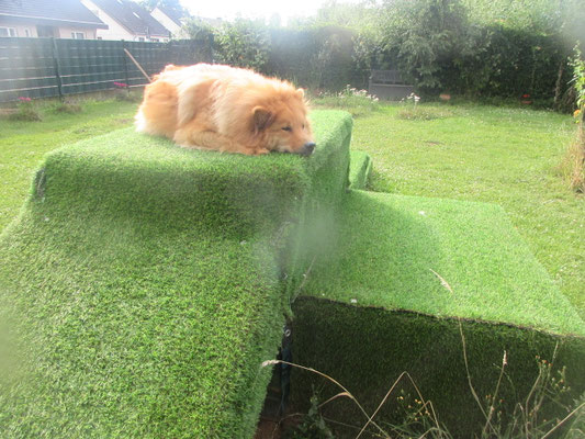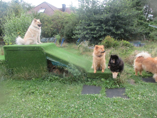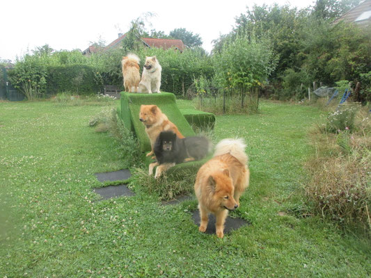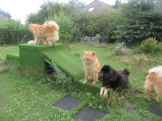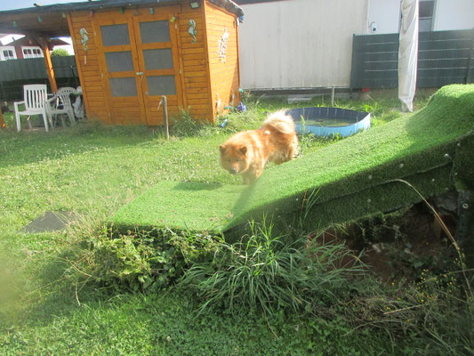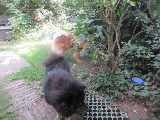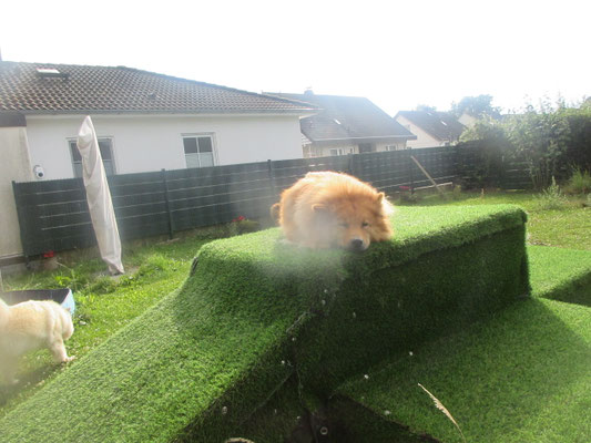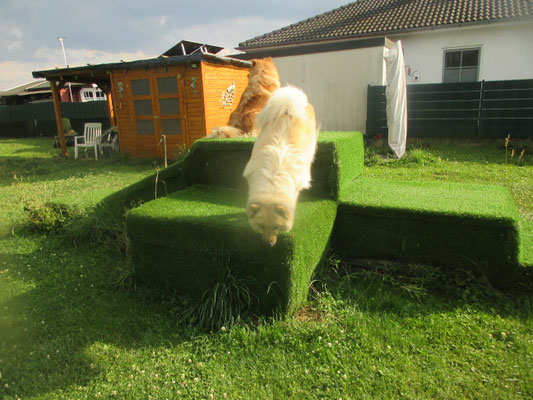 Am Morgen: Kaum im Gehege auf zur *Hoppla-hopp*- Rampe und zu den Schnüffelstellen !!!!