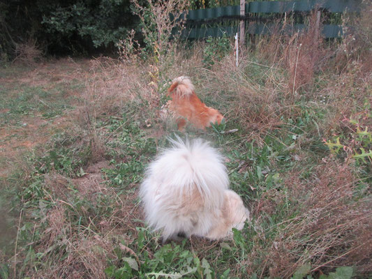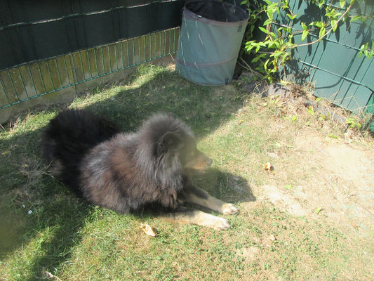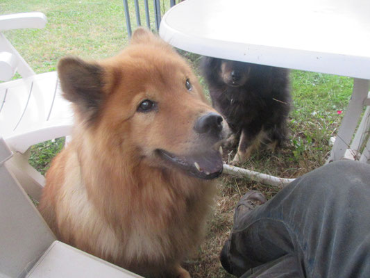 Spätnachmittag: Bettelattacke bei Frauchen unter dem Gehege-Pavillon