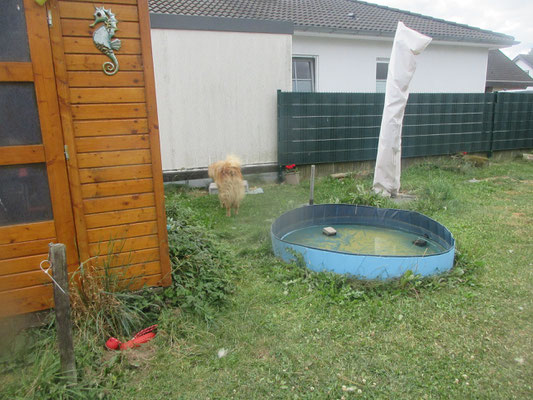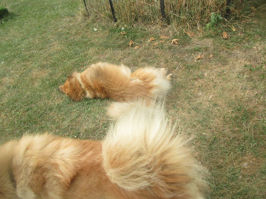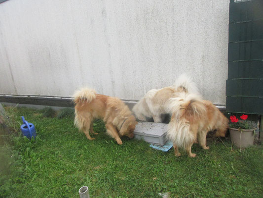 Spätnachmittag: "Was verbirgt sich wohl hinter unserem umgekippten Trinkwasserkasten ????"
