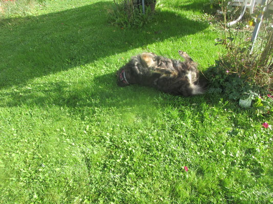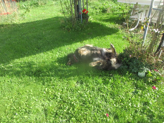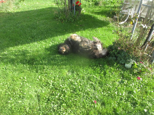 Es ist Mittag und die Sonne scheint !!!!! Und Oma Dhanea wälzt sich vor Vergnügen !!!!