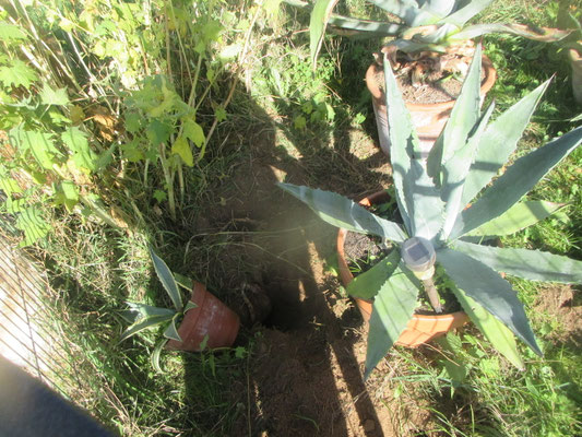 Frühnachmittag: Oh weh !!! Was geschieht dann da schon wieder !!!??? Buddeln vor und im Agavengehege !!!!