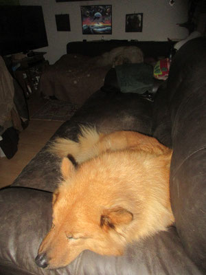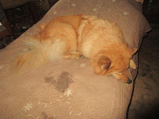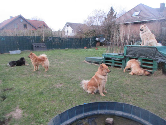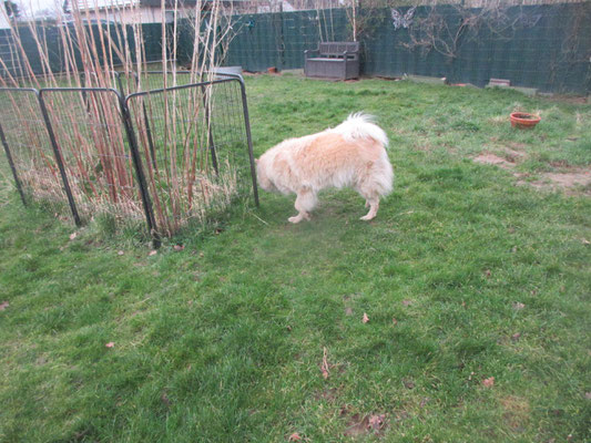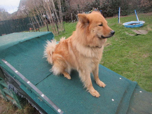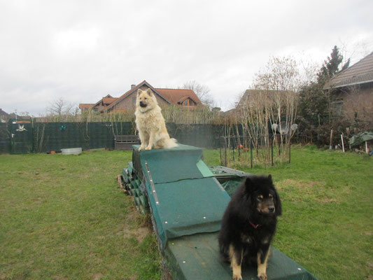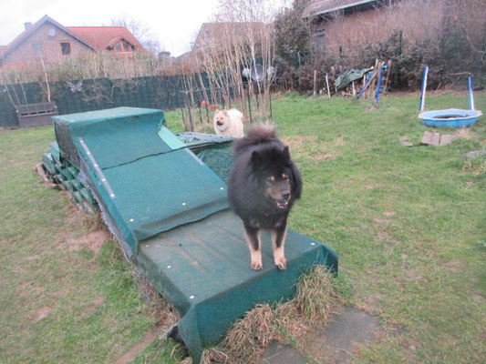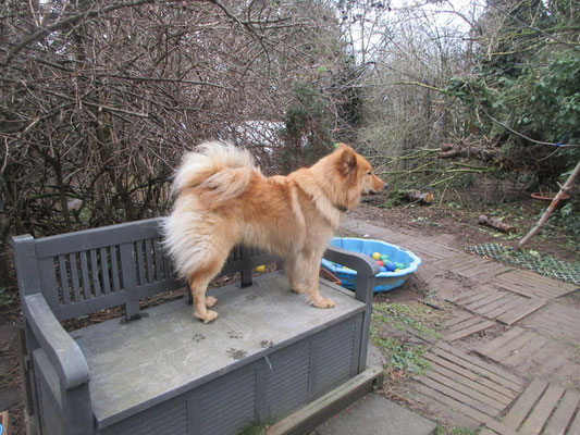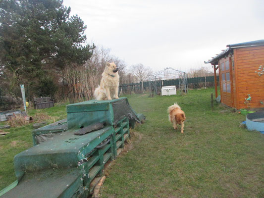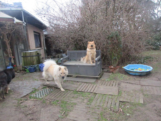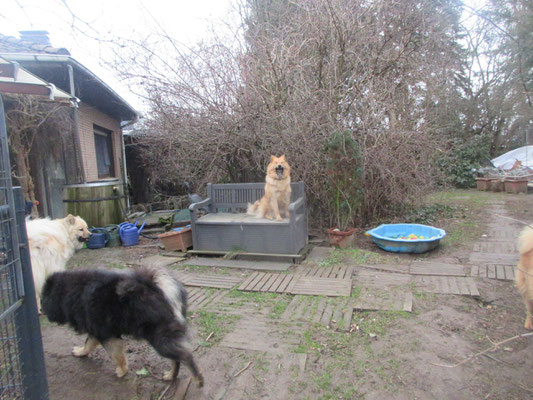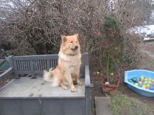 " Danach geht`s oben auch mal auf die Bank, bevor wir mit Frauchen ins Haus gehen!!!!"
