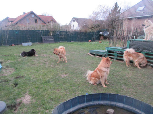 Am Vormittag im Gehege : Immer erst neue Spuren erschnüffeln !!!!