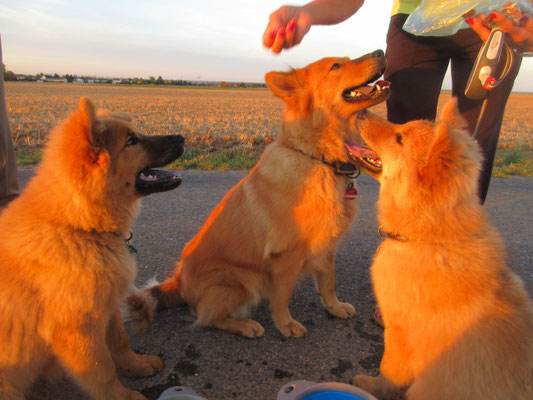 "Endlich ist Bea weg, denn jetzt gibt`s Leckerchen! Nur Bine ist dabei willkommen!!!"
