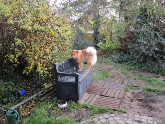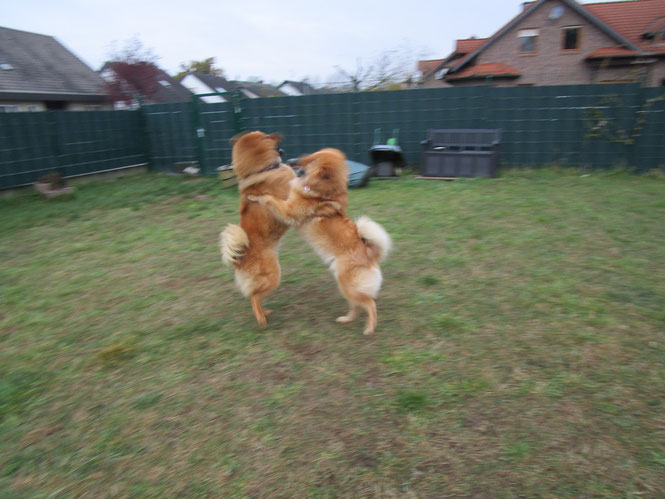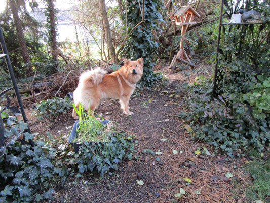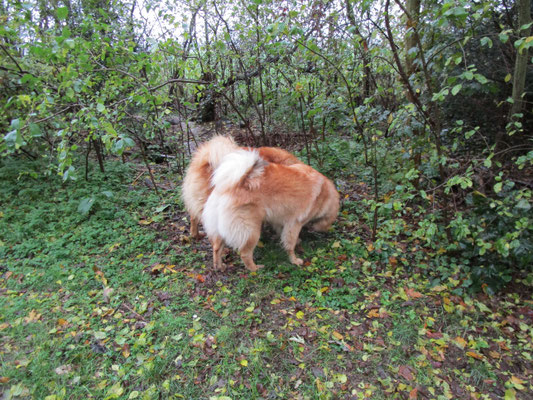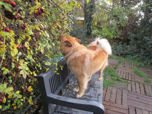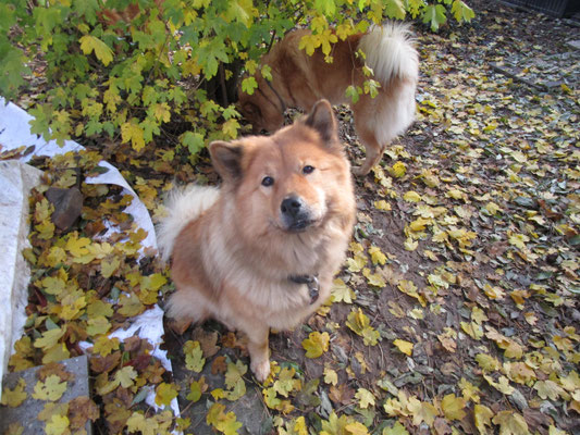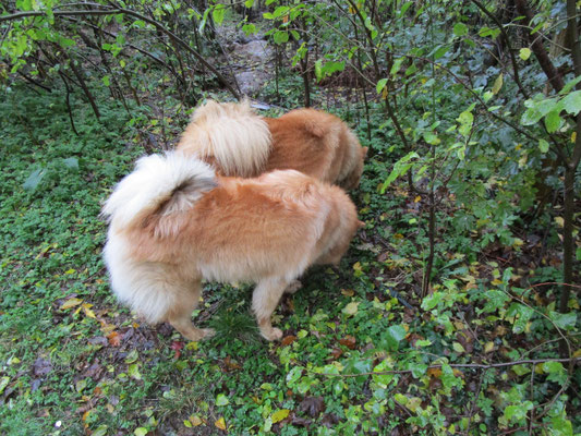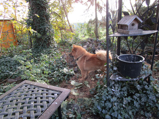 Dori und Teddy : "Überall flattert`s über uns ! Nur das Eichhörnchen zeigt sich nicht !!!"