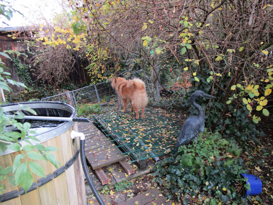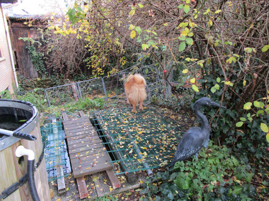 Teddy : "Mein Tag beginnt mit einem *Teich - Gitter - Stand mit Beobachtung der *Bade-Vögel* !!!"