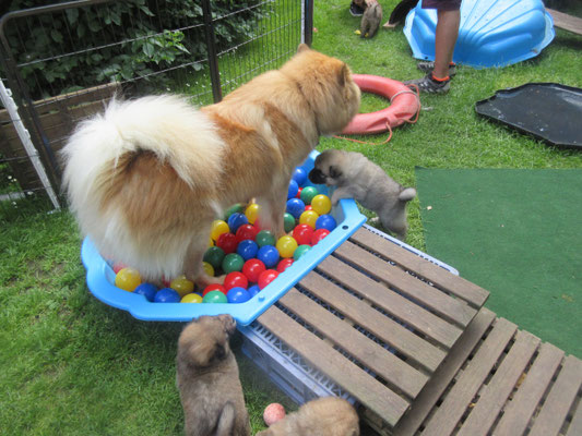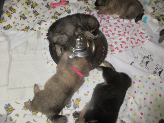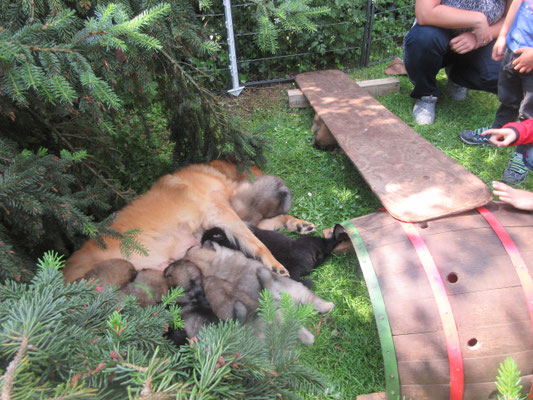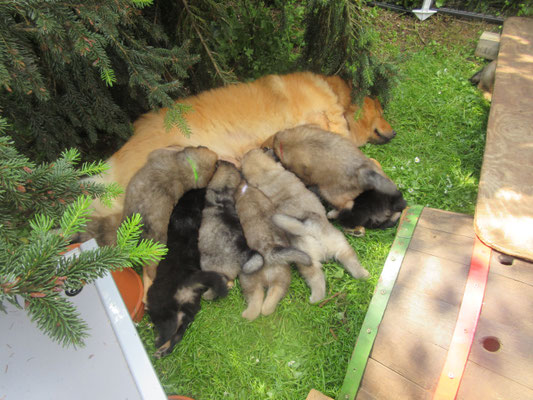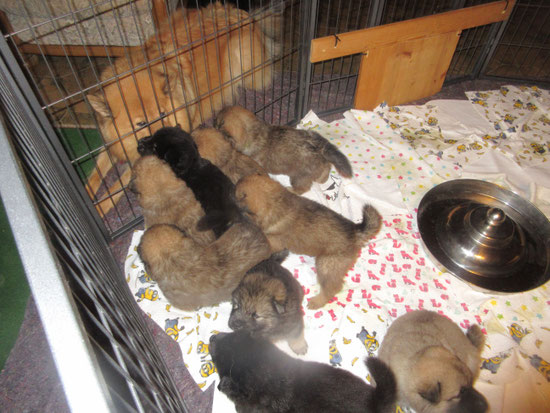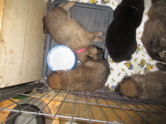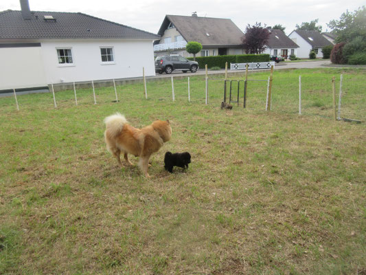 "Schon wieder eine Neuerung!!! Das vergrößerte Ruberg-Rudel hat für uns das große Gehege gebaut!!!